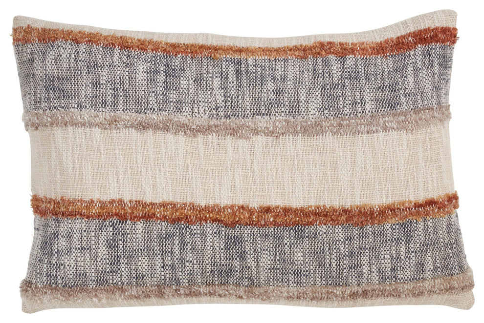 Throw Pillow With Horizontal Striped Design, Multi, 16"x24", Down Filled