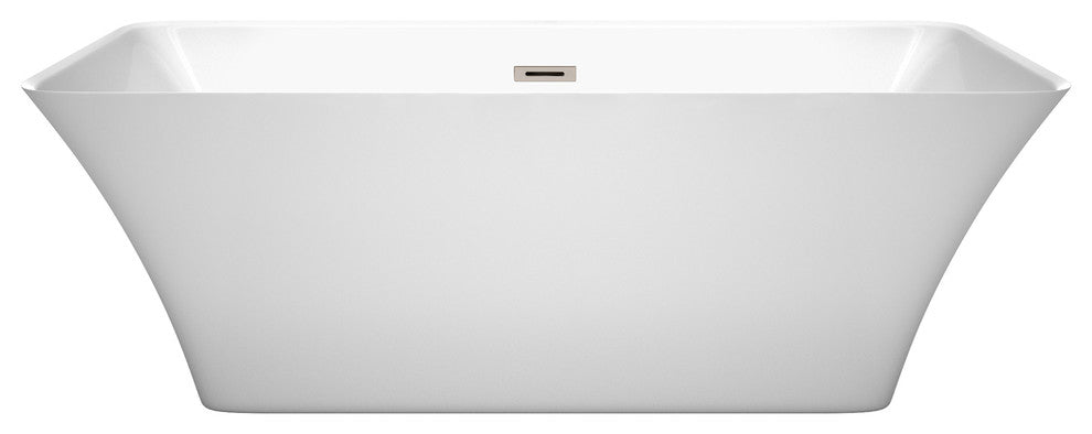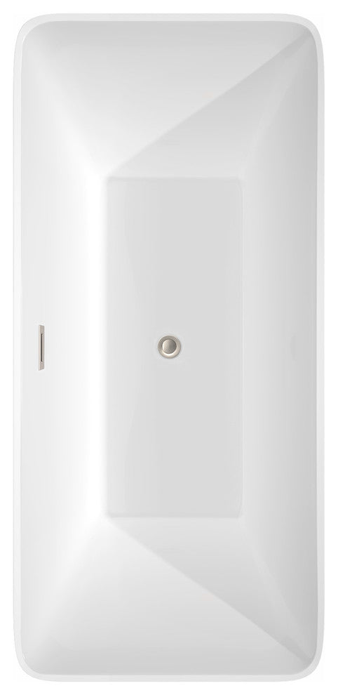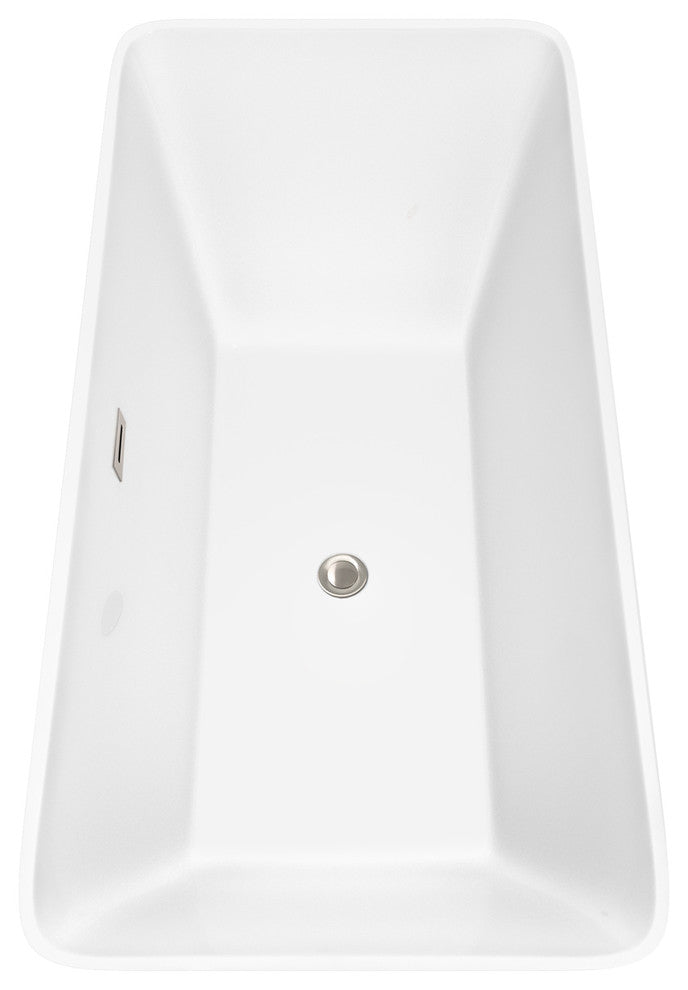 Tiffany 67" Freestanding White Bathtub, Brushed Nickel Drain and Overflow Trim