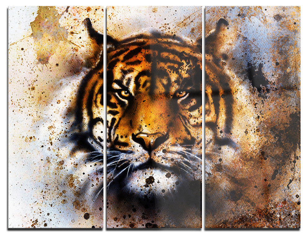 "Tiger Collage With Rust Design" Digital Metal Wall Art, 3 Panels, 36"x28"