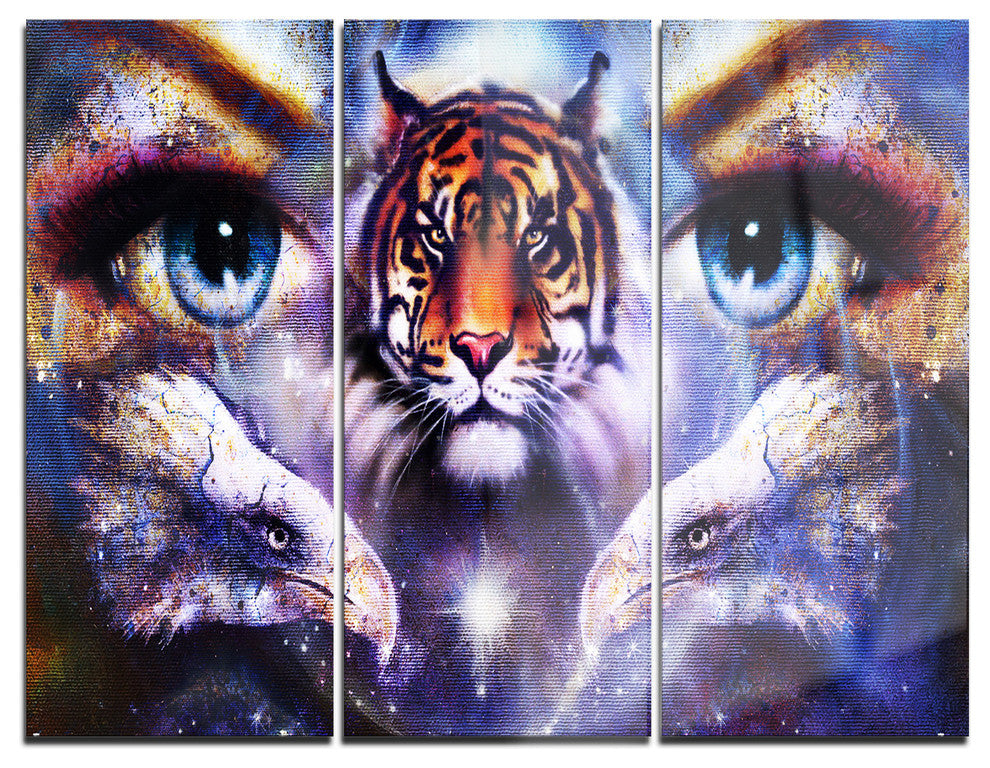 "Tiger With Woman Eyes" Metal Wall Art, 3 Panels, 36"x28"