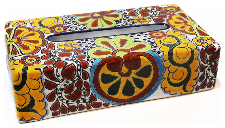 This handpainted tissue box cover will look great on any bath vanity. They also look great with other Talavera Bath accessories.