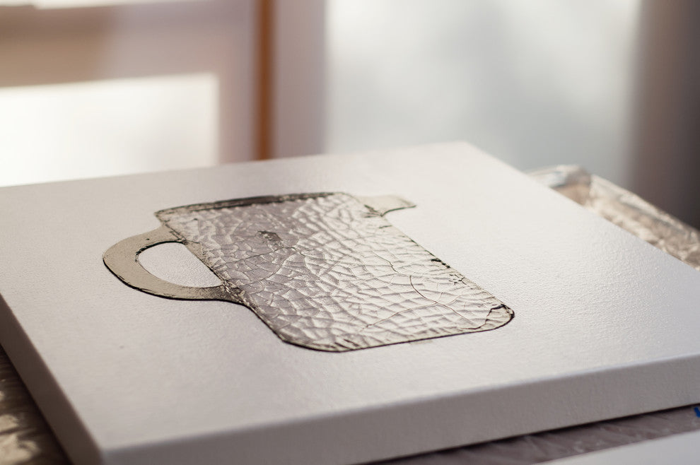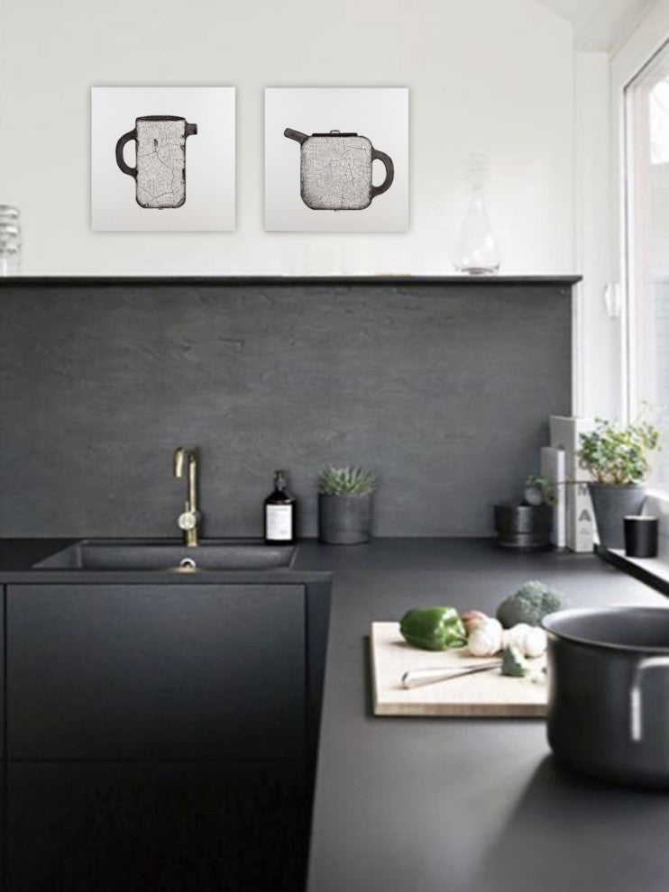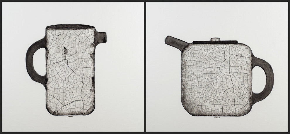 I absolutely love raku-fired pottery. Since I don��_�t own a kiln, nor am I a pottery artist, trying to capture the essence of them in a painting was my goal. Each of the the paintings are on 20��_ x 20" x 1.5" museum-quality gallery wrapped canvas. I used steel grey, black and white colored acrylic paint only, mixing them to achieve an elegant color and feeling. The texture is created with acrylic mediums.Note: Frame not included
