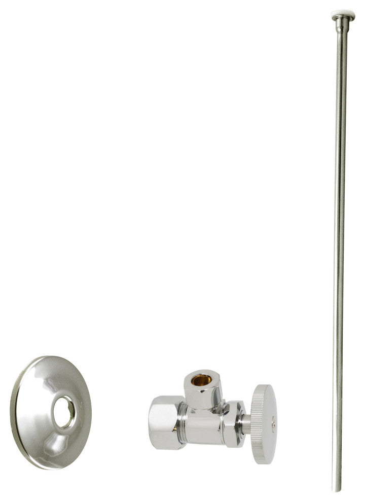 This Angle Stop Kit with Cross Handle is the perfect compliment for water closets. It uses a 5/8 in. OD (1/2 in. Copper) Inlets with a 3/8 in. OD Compression outlets with nut and ferrule. The kit features a 20 in. Flathead toilet riser. The valves use traditional compression closure for positive seal. It is available in a variety of finishes.
