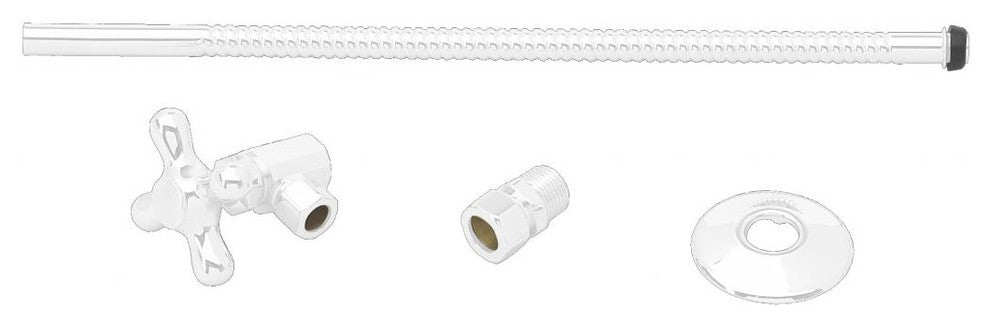 Toilet Kit With Stop And Corrugated Riser - Cross Handle In Powder Coated White
