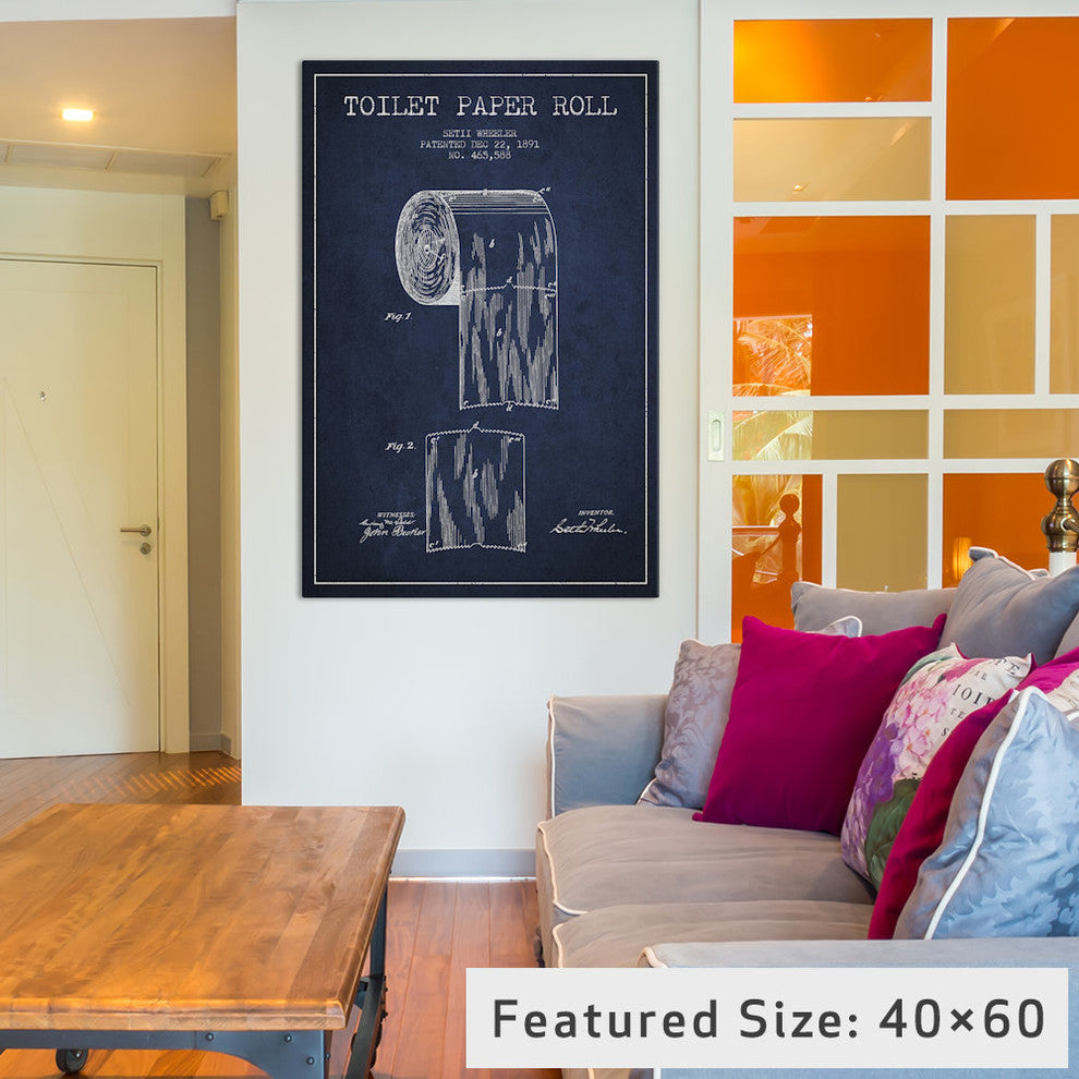"Toilet Paper Navy Blue Patent Blueprint" by Aged Pixel, 18x12x1.5"