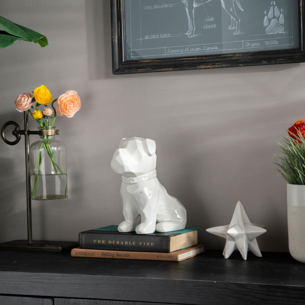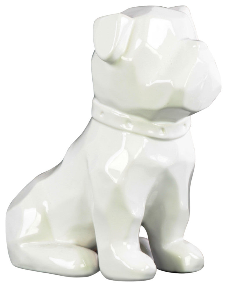UTC figurines are made of the finest ceramics which makes them tactile and attractive. They are primarily designed to accentuate your home, garden or virtually any space. Each figurine is treated with a gloss finish that gives them rigidity against climate change, or can simply provide the aesthetic touch you need to have a fascinating focal point!! • Ceramic Geometric Sitting British Bulldog Figurine with Collar Gloss Finish White• Brand: Urban Trends Collection• Material: Ceramic• Color: White• Item Size: 5.50"x4.00"x8.00"H• UPC: 190563450234• For Decorative Purposes Only• Does Not Hold Water