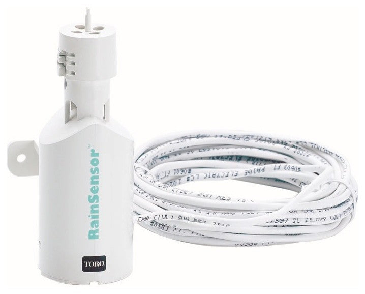 The toro wired rain sensor saves water and money by automatically interrupting your irrigation system when it rains. It works by absorbing rainwater and then responds by interrupting power to the valves. The rain sensor will then gradually dry out, as does the soil, allowing sprinklers to run as scheduledHighlights:Compatible with most automatic timersAdjust the rain sensitivity from 1/8" to 1"Requires wiring between the sensor and the controllerQuick-Clip gutter bracket for one-piece, tool free mountingSensor uses industry standard hygroscopic discs to sense rainOperating temperature from -20 degrees to 140 degrees saves water and moneyWater conservation device that meets legislative standards instates/ municipalities with mandates25'' of UL rated connection wire included• Clamshell