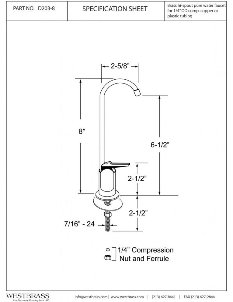 The Westbrass Touch-Flo Style, 8 in. pure water dispenser with tall spout, and piston handle, is a stylish and functional addition to any kitchen. Hook up to a water filter, instant water chiller or even directly to your cold tap to provide a simple, easy-to-use water delivery system. Available in a variety of decorative finishes, this item is sure to complement your existing fixtures.