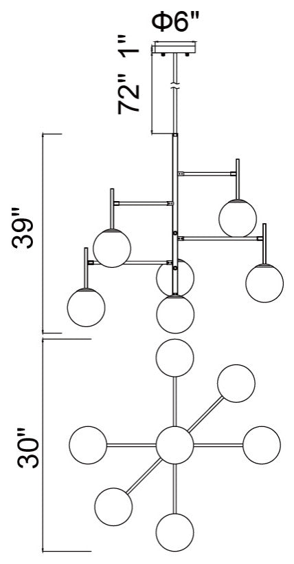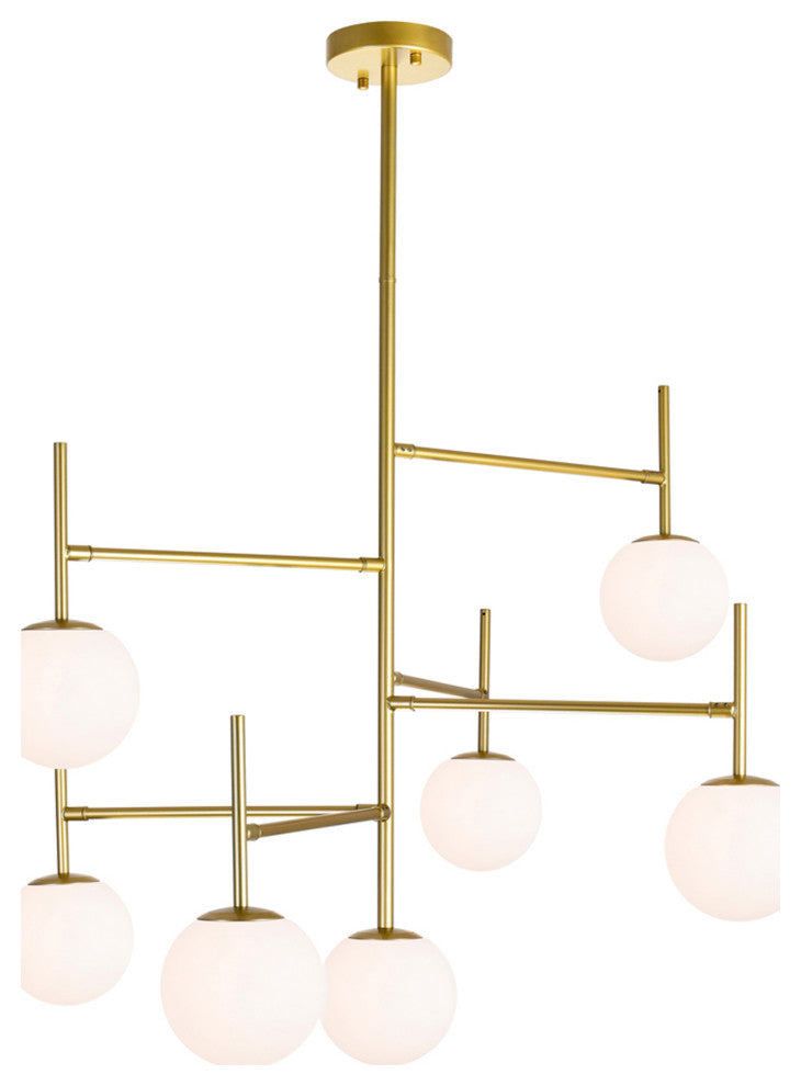 The Tourch 7 Light Chandelier in Medallion Gold is a true statement piece. Its golden finish brings an air of drama into wherever it is placed. This downlight chandelier utilizes lines and curves that harmoniously complement each other. At the tip of each sleek line are round frosted bulbs emitting a welcoming illumination. Create the perfect ambiance with this modern geometric down chandelier. Feel confident with your purchase and rest assured. This fixture comes with a one year warranty against manufacturers defects to give you peace of mind that your product will be in perfect condition.