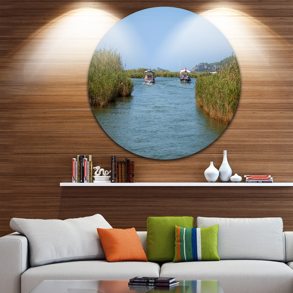Touristic River Boats, Landscape Photography Disc Metal Wall Art, 23"
