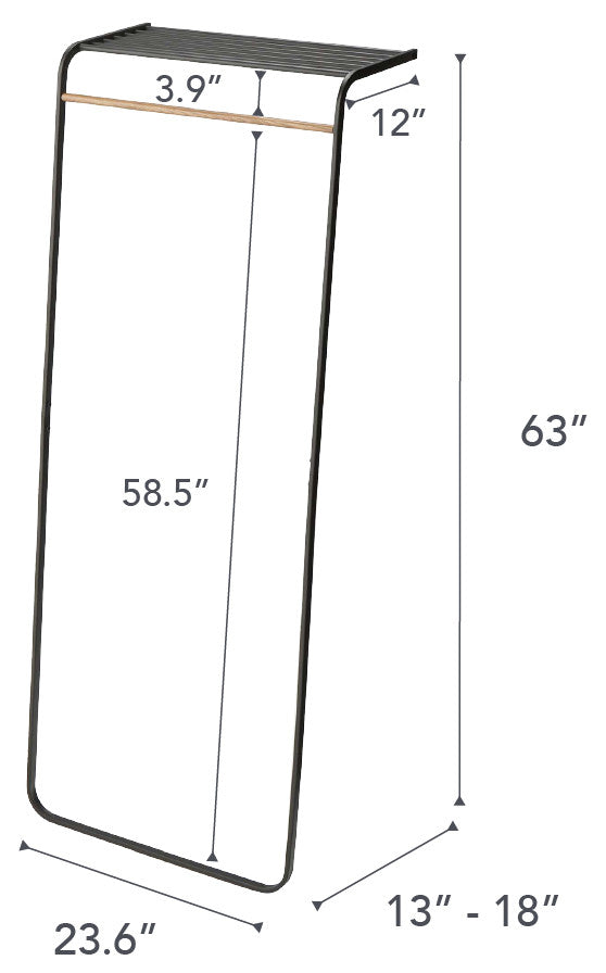 Turn open wall space into a wardrobe with this leaning hanging rack. A no-slip surface lines the base to keep the rack in place and the top shelf provides extra storage for hats and bags or folded items. [Details]