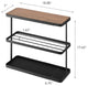 A super-slim side table designed for tight spaces. The middle shelf was designed to support newspapers and magazines and taller books or simple perch them horizontally. A rimmed base shelf and middle rack shelf provide additional storage while the narrow but deep design leaves room for necessary items up top. [Details]