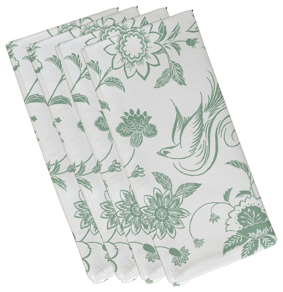 Traditional Bird Floral, Floral Print Napkin, Green, Set of 4