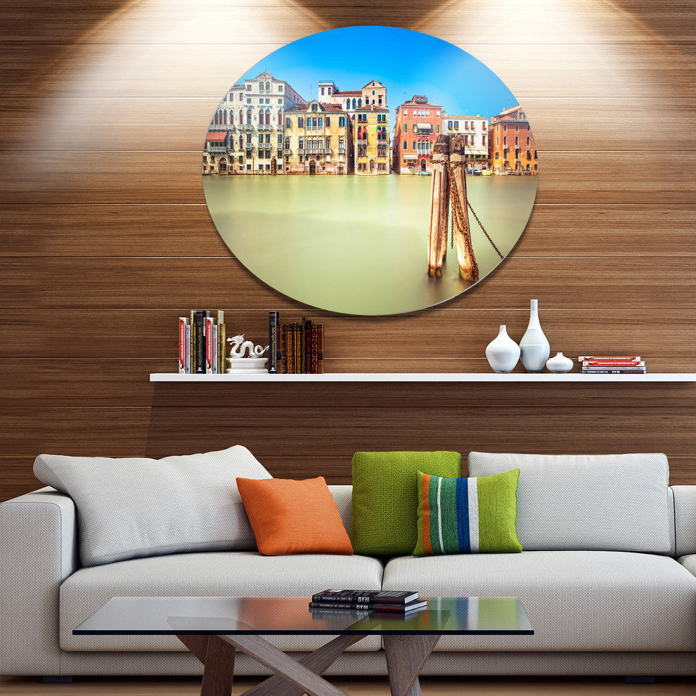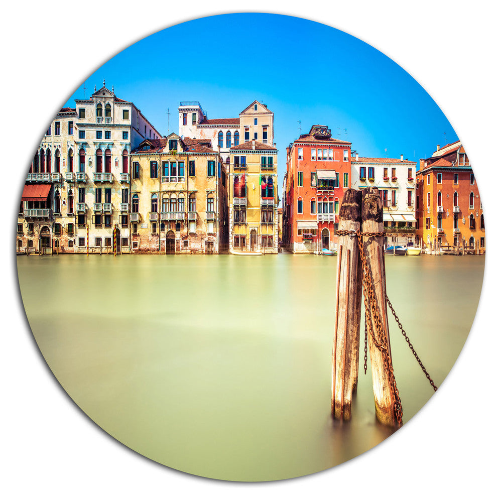 Traditional Buildings Of Venice, Landscape Round Metal Wall Art, 36"