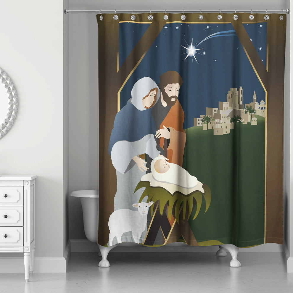 With a festive nativity design, this shower curtain is an excellent accent piece for your bathroom this holiday season. The shower curtain includes 12 eyelets for hanging and is made of softened polyester fabric. The result is a fun statement piece that is sure to add some personality to your space!