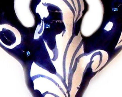 This candle holder is hand-painted with a traditional blue/white pattern all around its body. It will hold three candles. This ceramic candle holder is just an example of the exquisite beauty the Mexican craftsmen put in each item they create. Since it is handcrafted and hand-painted, no two candle holders are exactly the same! Small differences in size, weight and color are to be expected.Hand-hammered and mold-cut to perfectionHandcrafted by Mexico''s Finest ArtisansWe include 1" long brown screws in all of our hammered copper switch plates