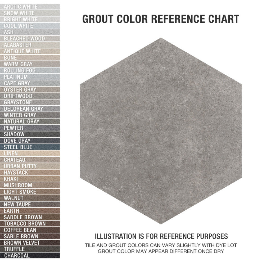 Offering a cement look, our Traffic Hex Grey Porcelain Floor and Wall Tile features a slightly textured, matte finish, providing decorative appeal that adapts to a variety of stylistic contexts. Containing 24 different print variations that are randomly distributed throughout each case, this gray hexagon tile offers a one-of-a-kind look. With its impervious, frost-resistant features, this tile is an ideal selection for both indoor and outdoor commercial and residential installations, including kitchens, bathrooms, backsplashes, showers, hallways, entryways, patios and fireplace facades. This tile is a perfect choice on its own or paired with other products in the Traffic Collection. Tile is the better choice for your space!