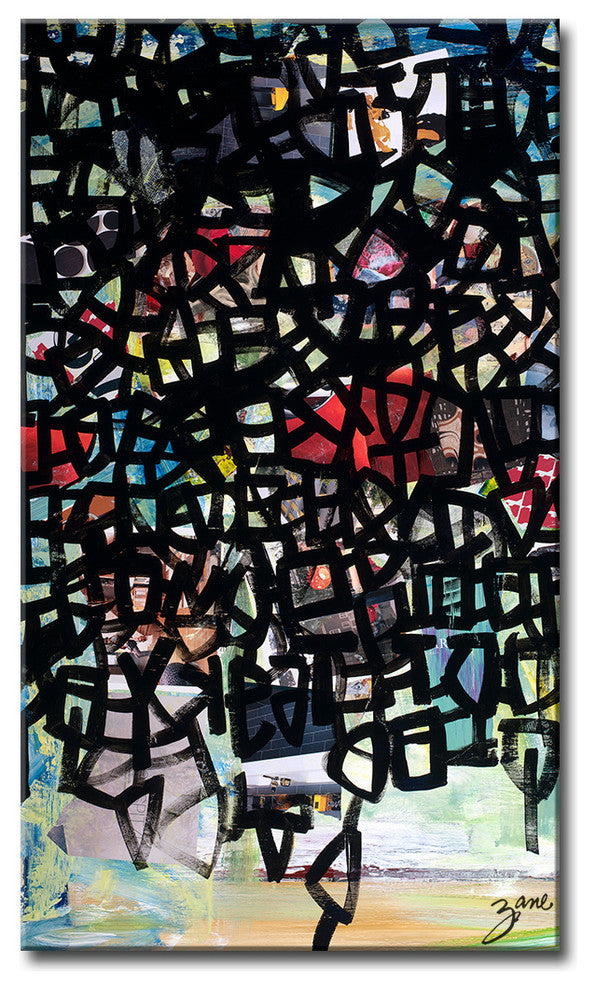 Salvatore Principe abstract ''Transit NYC'' expresses the calamity of travel in a big city. Cities that never sleep are famous for complex transportation systems. The vibrant colors beneath a web of thick black strokes captures the liveliness that is a wondrous city. Is the amazing energy, and beautiful bright light worth the exchange? Pose this particular query when you add this phenomenal canvas to your interior design. Handcrafted in the United States, this gallery-wrapped canvas art arrives ready to hang on your wall.
