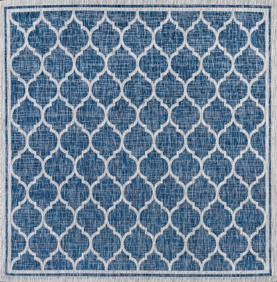 Our popular geometric design is inspired by Moroccan tile patterns. This classic rug adds eclectic style to an outdoor porch or patio. Mingled tones of blue and navy with a light gray ogee trellis pattern give this rug a hand-woven texture. The flatweave design is great for high-traffic spaces indoors too.Features:• Flat-weave construction of 100% polypropylene• Deep blues and light gray with a handwoven mingled texture• Water resistance with 0.19" pile• 100% Polypropylene• No backing, use of rug pad is recommended (sold separately)• Power Loomed in Turkiye• Actual Dimension: 9 ft x 9 ft. Square• Color: Navy/Gray• Thickness measures: 0.19 in.• Available in multiple sizes and/or colorsRug Care:• Vacuum regularly and spot clean as needed; avoid direct and continuous exposure to sunlight; use brushless vacuum; remove spills immediately; if liquid, blot with clean, undyed cloth by pressing firmly around the spill to absorb as much as possible; for hard to remove stains, professional rug cleaning is recommended; store in a dry, well ventilated area and rotate for consistent wear• Packing and shipping may cause temporary creases in rugs, which will flatten out after a week on the floor; to expedite the process, try back-rolling your rug before laying it down, and then allow ample time for the remaining creases to relax• Please Note: Due to differences in monitors, some rug colors may vary slightly. Lengths and widths may vary from the published dimensions. Patterns may vary slightly according to shape and size selected.About us:Style your floors with JONATHAN Y. By combining fine craftsmanship and design, this New York creative studio is bringing fashion to your floors. The collection mixes sustainable organic materials, vibrant colors and trend worthy styles to create JONATHAN Y''s distinctive catalog of rugs.