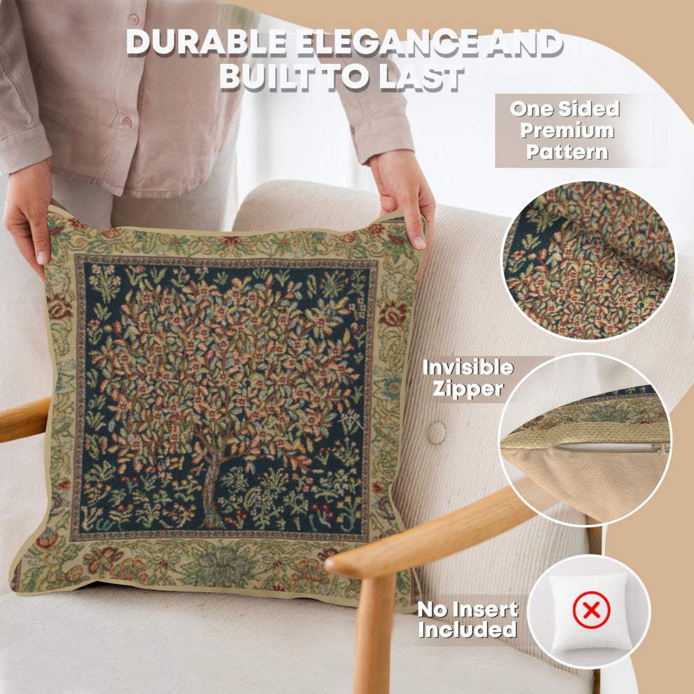 Tree of Life - Pastel Belgian tapestry cushion cover is inspired by the work of William Morris, painter, author and poet. The tree of life tapestry is a mystical concept, a metaphor for common descent, and a motif in various world theologies and philosophies.