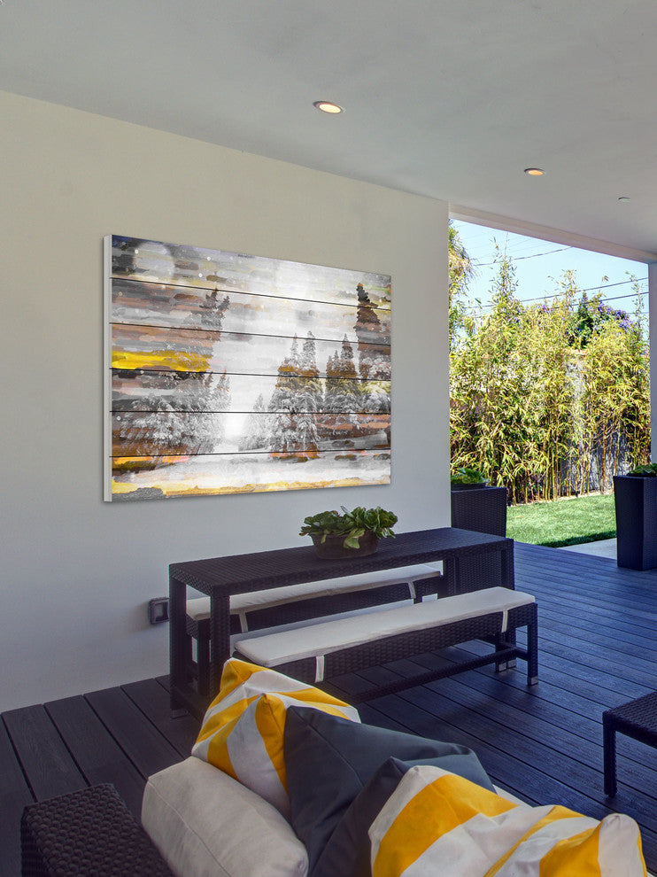 Liven up your walls with artwork that speaks to your style. This beautiful "Tree Snow" Painting Print on White Wood features vivid tones and supple artistry. Printed on white wood, this 45 inch wide by 30 inch tall piece will be an exceptional addition to any room. Fine art UV ink print on white wood from Marmont Hill CollectiveWood pieces are hand-selected by fine craftsmen or printingArrives ready to hangIncludes a certificate of authenticityArtist signature on the front