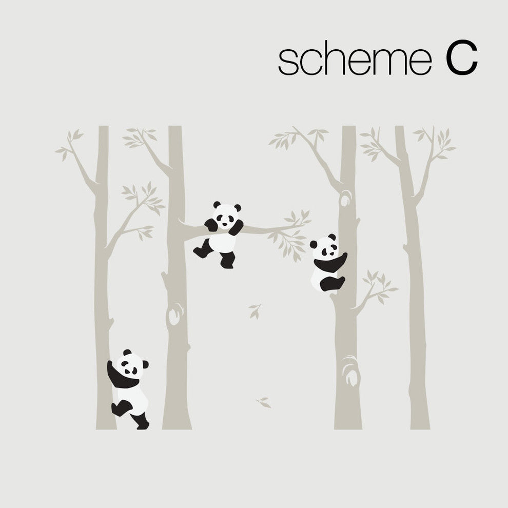 Trees With Pandas Wall Decal, Scheme C, 96" Tall Trees