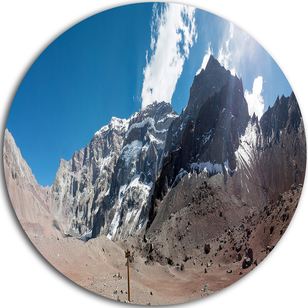 Bring Contemporary Abstraction to your home with this large Circle Metal wall art. This Trekking to Plaza Francia Panorama Metal Artwork makes it the focal point of any room or office.