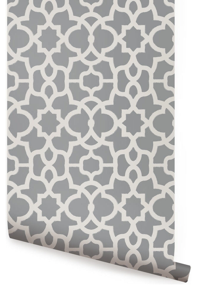 Trellis Peel and Stick Vinyl Wallpaper, Cool Gray, 24"w X 108"h