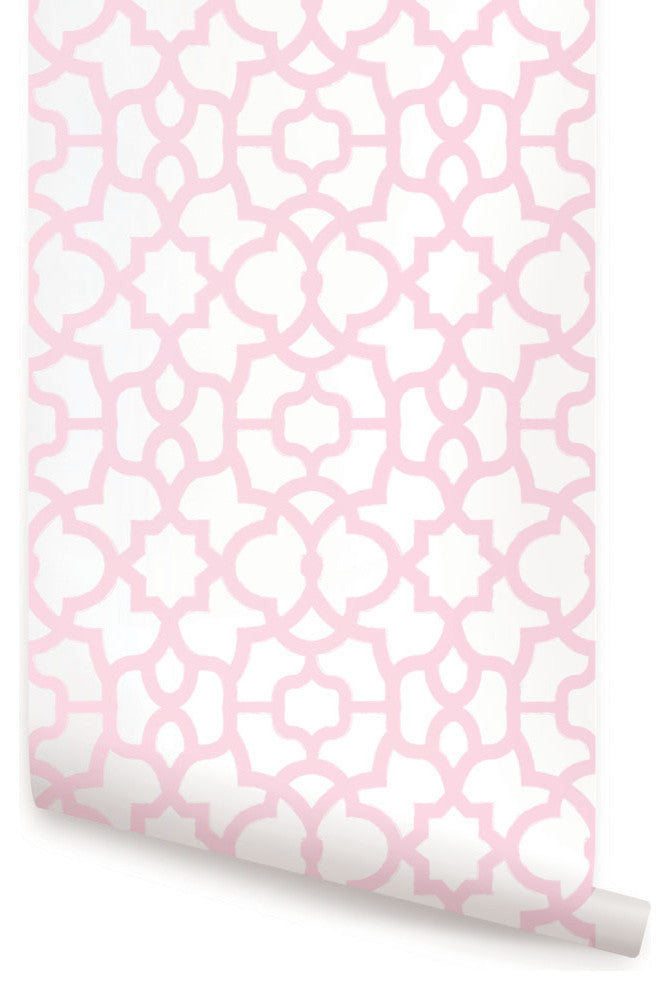 Trellis Peel and Stick Vinyl Wallpaper, White/Pink, 24"w X 60"h