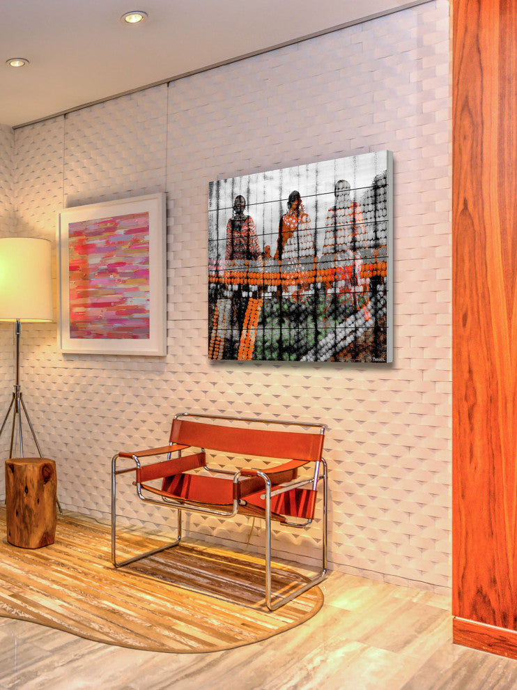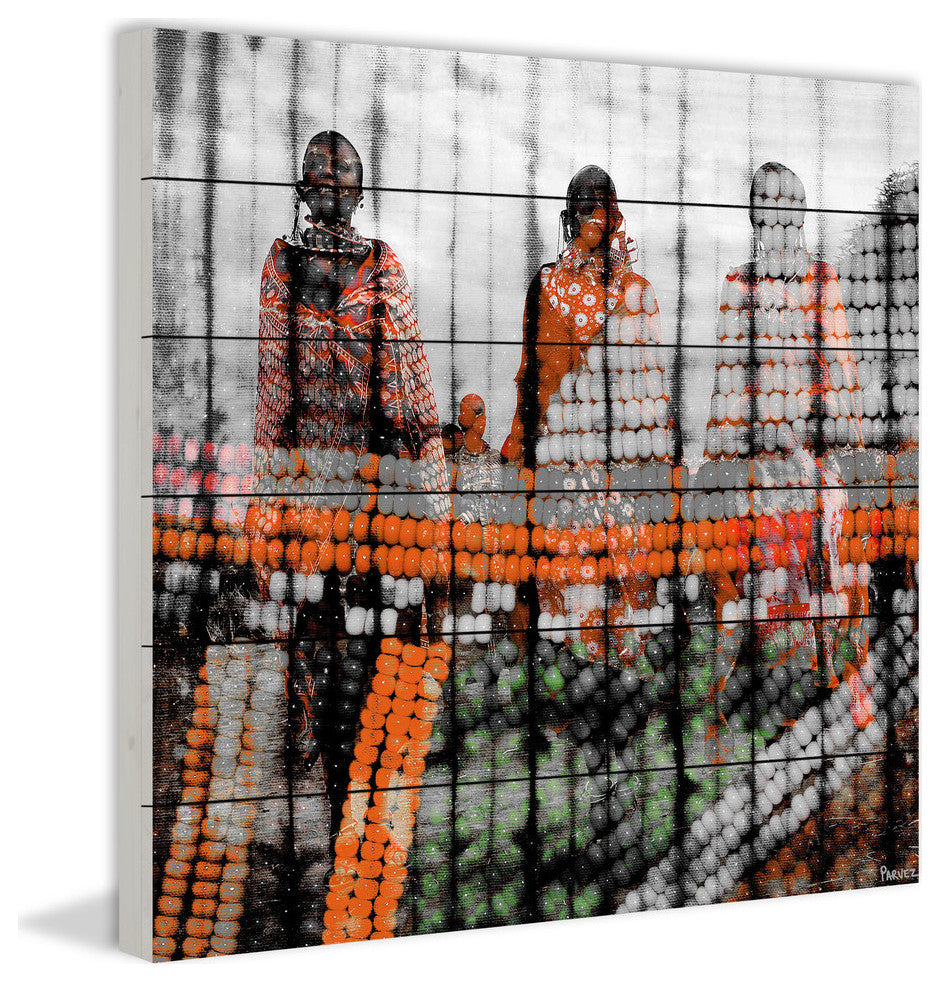 Striking and unique, the "Tribal Colors" Print on White Wood by Parvez Taj will bring your walls to life. Printed on white wood, this 32 inch wide by 32 inch tall contemporary artwork will make a statement in any living room, dining room, or bedroom.- Fine art UV ink print on white wood by Parvez Taj- wood pieces are hand-selected by Fine craftsmen for printing- Arrives ready to hang- Includes a certificate of authenticity- Artist signature on the front