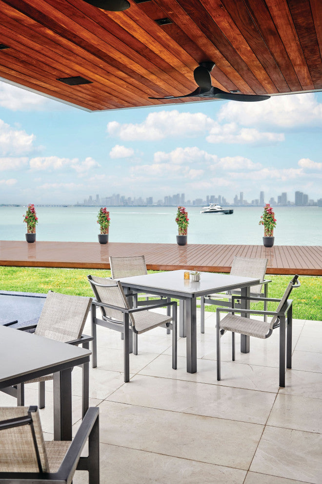 Bring a modern sensibility to your outdoor space with the Tribeca Sling collection. Designed with sleek lines and a contemporary urban feel, each piece balances style, comfort, and durability. The slender, contemporary silhouette of the chair adds an artistic touch, making it as striking as it is inviting. Crafted with a weatherproof, powder-coated aluminum base, it''s built to last season after season.Features:•  Overall product dimensions are 24" W x 24.5" D x 34" H•  Extremely durable 100% powder-coated aluminum frame will not rust, peel, or crack•  High-quality 100% stainless steel hardware•  Quick-drying, replaceable sling fabric lets you update your look while keeping the frame•  Stackable design for efficient storage options•  Proudly made in the USA with over a century of craftsmanship since 1903Dimensions:Outdoor Standard Chair•  Assembled Product: 24 inches wide x 24.5 inches deep x 34 inches high•  Seat Depth: 26.5 inches•  Seat Height: 26 inches•  Back Height: 43.5 inches•  Weight Capacity: 350 pounds