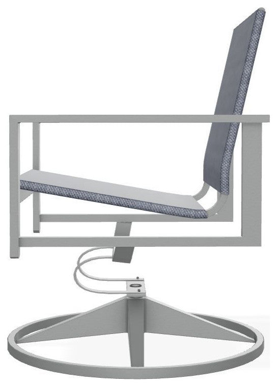 Bring a modern sensibility to your outdoor space with the Tribeca Sling collection. Designed with sleek lines and a contemporary urban feel, each piece balances style, comfort, and durability. The timeless swivel rocker offers smooth mobility, so you never miss a moment with family or guests. Crafted with a weatherproof, powder-coated aluminum base, it''s built to last season after season.Features:•  Overall product dimensions are 24" W x 25" D x 34.75" H•  Extremely durable 100% powder-coated aluminum frame will not rust, peel, or crack•  High-quality 100% stainless steel hardware•  Quick-drying, replaceable sling fabric lets you update your look while keeping the frame•  Smooth swivel rocking motion with 360 degree rotation•  Proudly made in the USA with over a century of craftsmanship since 1903Dimensions:Outdoor Standard Chair•  Assembled Product: 24 inches wide x 25 inches deep x 34.75 inches high•  Seat Depth: 26.5 inches•  Seat Height: 26 inches•  Back Height: 43.5 inches•  Weight Capacity: 350 pounds