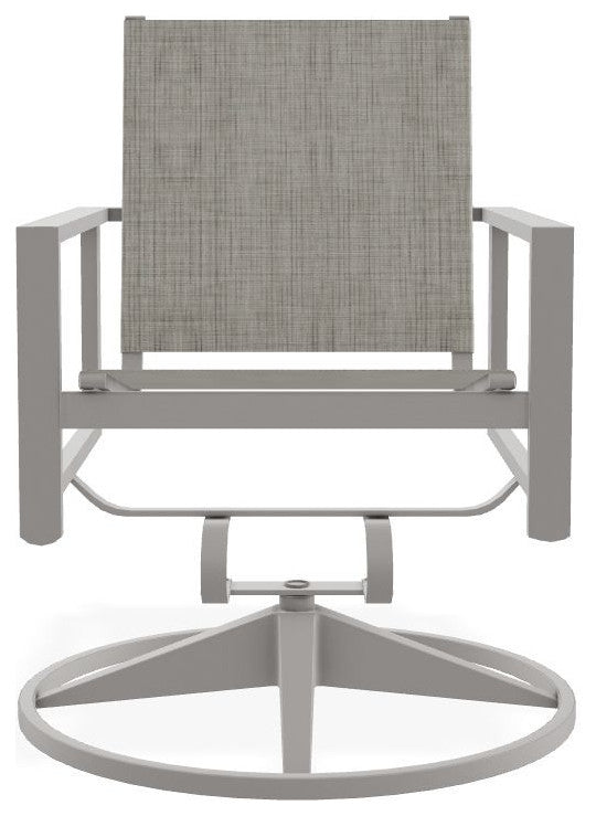 Bring a modern sensibility to your outdoor space with the Tribeca Sling collection. Designed with sleek lines and a contemporary urban feel, each piece balances style, comfort, and durability. The timeless swivel rocker offers smooth mobility, so you never miss a moment with family or guests. Crafted with a weatherproof, powder-coated aluminum base, it''s built to last season after season.Features:•  Overall product dimensions are 24" W x 25" D x 34.75" H•  Extremely durable 100% powder-coated aluminum frame will not rust, peel, or crack•  High-quality 100% stainless steel hardware•  Quick-drying, replaceable sling fabric lets you update your look while keeping the frame•  Smooth swivel rocking motion with 360 degree rotation•  Proudly made in the USA with over a century of craftsmanship since 1903Dimensions:Outdoor Standard Chair•  Assembled Product: 24 inches wide x 25 inches deep x 34.75 inches high•  Seat Depth: 26.5 inches•  Seat Height: 26 inches•  Back Height: 43.5 inches•  Weight Capacity: 350 pounds