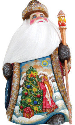 Invite the beauty of the season into your home with G.DeBrekht Masterpiece Collection of hand painted•  wood carved Santa Claus sculptures and more. All Masterpiece and Masterpiece Signature wood carvings are individually hand numbered. These holiday table top decor products make wonderful collectible and nostalgic Christmas gifts. The sculptures are painted by freehand and the old world classic art includes animals, nature, winter scenes, Santa Claus, the nativity and more. These collections were inspired by an old art technique using painting mediums of watercolor, acrylic, and oil combinations, which ultimately became G. DeBrekht unique, signature painting style. These masterpieces are carved from light Linden wood, although the natural wood does vary in color. Christmas is a special time for families, and with G. DeBrekht holiday home decor you can choose your own unique style and create a memorable holiday art gallery for your family and friends to enjoy. Size:7 x 4 x 4 Catalog#16-WOODCARVED-Holiday Accents & Decor