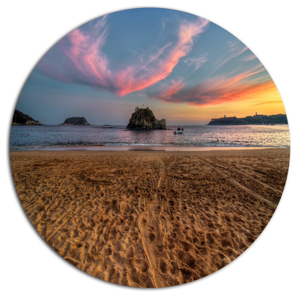 Bring Contemporary Abstraction to your home with this large Circle Metal wall art. This Trodden Sand on Beach at Sunset Metal Artwork makes it the focal point of any room or office.