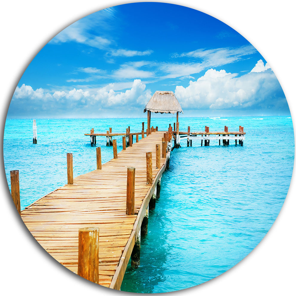 Bring Contemporary Abstraction to your home with this large Circle Metal wall art. This Tropic Paradise Jetty in Mexico Metal Artwork makes it the focal point of any room or office.