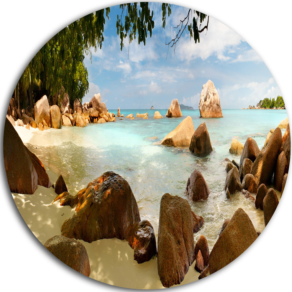 Tropical Rocky Beach Panorama, Large Disc Metal Wall Art Landscape, 36"