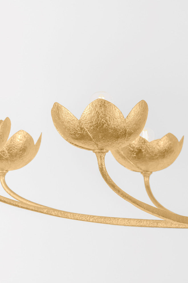 A fresh take on a botanic motif, the Arcata family features sculptural, romantic silhouettes with highly tactile, hand-worked finishes. The gentle sweeping arms transition from square to round, creating a dynamic look that complements the floral forms. Arcata is available as a 1-light sconce and 6 or 8-light chandeliers with the choice between contemporary Gesso White or a luxurious Vintage Gold Leaf finish.
