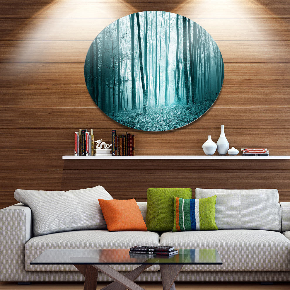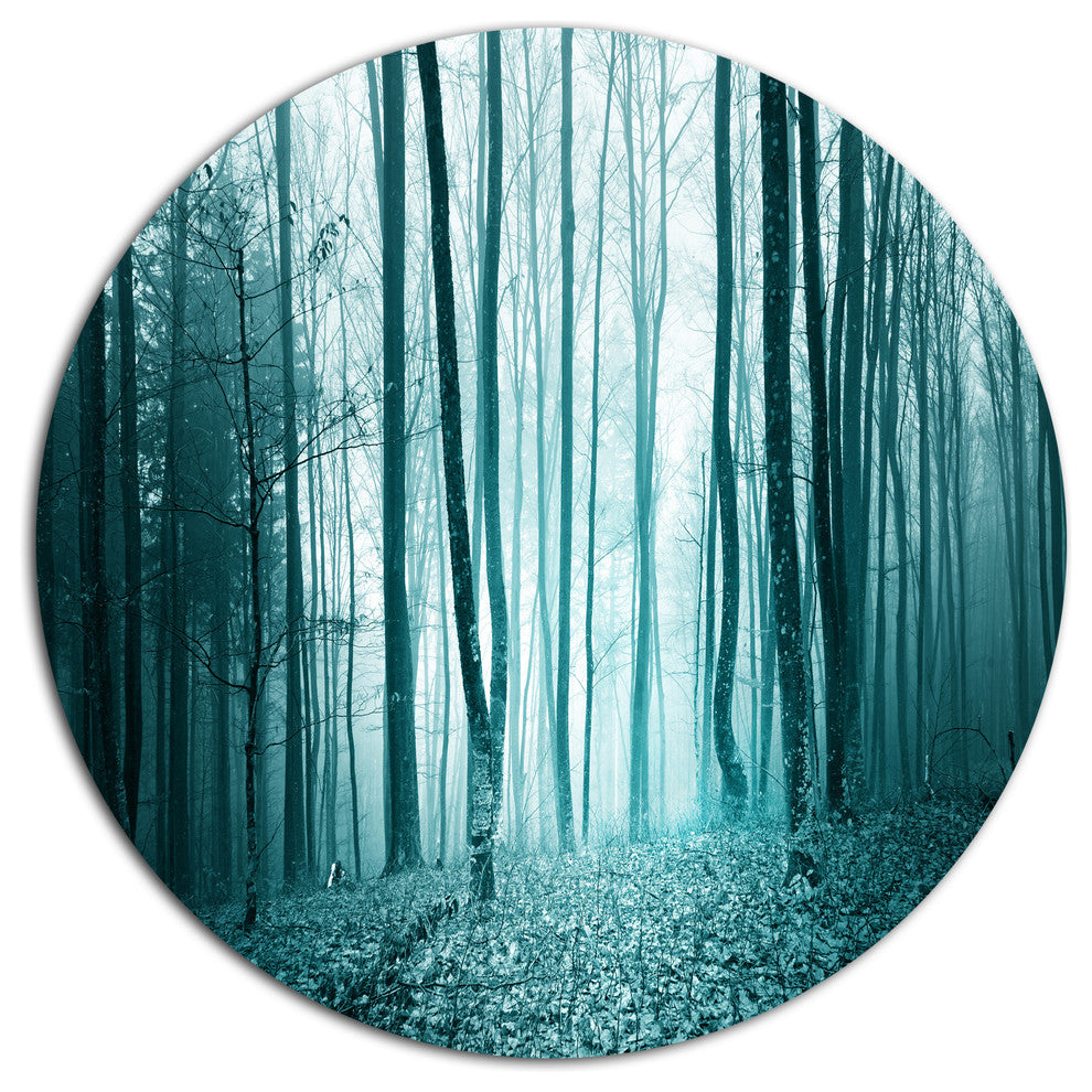 Turquoise Colored Magic Forest, Modern Forest Round Wall Art, 11"