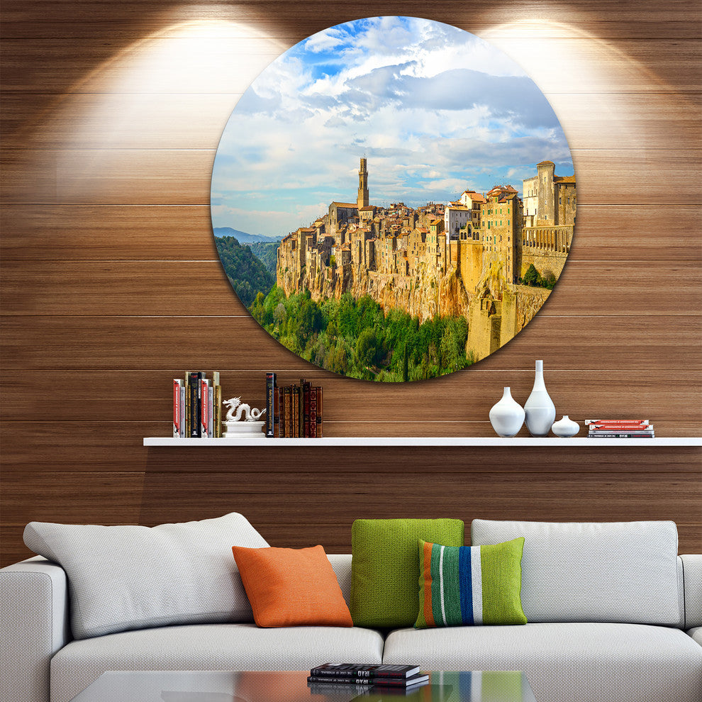 Bring Contemporary Abstraction to your home with this large Circle Metal wall art. This Tuscany Pitigliano Medieval Village Metal Artwork makes it the focal point of any room or office.