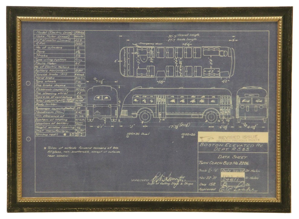 Twin Coach Bus No. 2206 Blueprint, Black Frame With Silver Bead