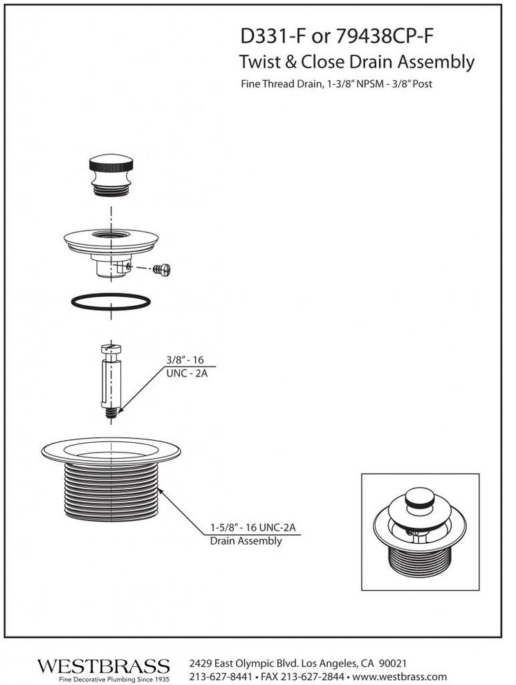 This simple to use bath drain plug from Westbrass features a twist-and-close mechanism to easily open and close your tub drain. This style is ideal for waste and overflow drainage. Available in a variety of finishes, this item is sure to complement your existing decorative fixtures.