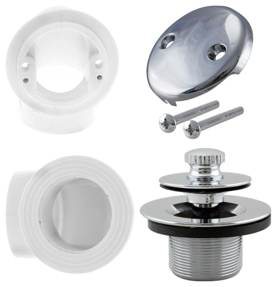 This Schedule 40 PVC plumber''s pack included the two hole top elbow, coarse thread bottom elbow, metal overflow cover and tip-toe strainer and closure. Just what a plumber needs - no tee or PVC pipe is included. 1-1/2 in. Tip-Toe Style Drain. Two Hole overflow faceplate. PVC Top Elbow and Shoe Elbow Included. Heavy Duty Metal Construction. Tubing and Tee Not Included.
