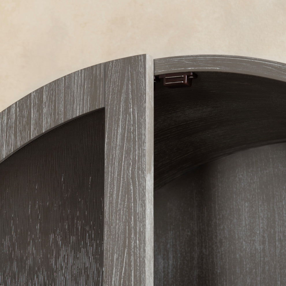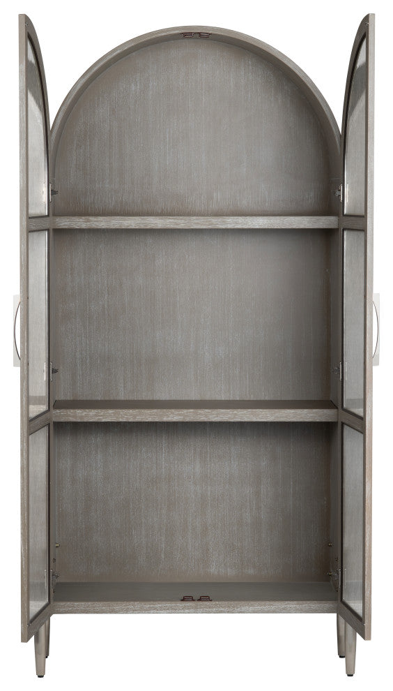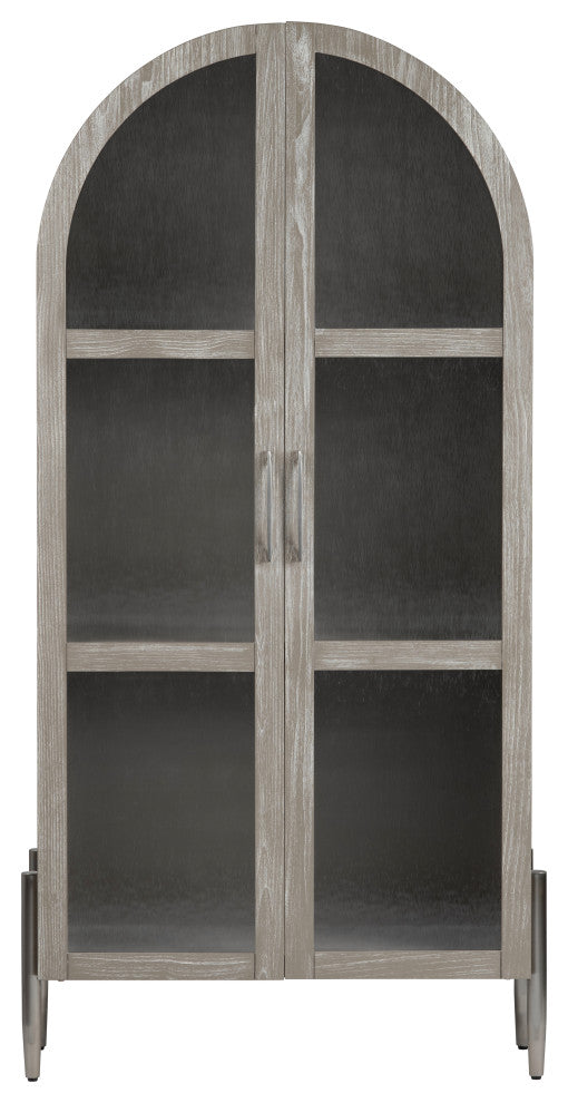 This sleek cabinet blends modern functionality with elegant design. Crafted from rubberwood and white oak veneer, it boasts a khaki finish with subtle brown undertones for a natural, sophisticated look. Featuring two tempered glass doors with soft-close European hinges and metal silver handles, the cabinet provides easy access to two fixed shelves for organized storage. Supported by sturdy steel legs with floor levelers, its contemporary design is complete with effortless assemblyejust add the feet