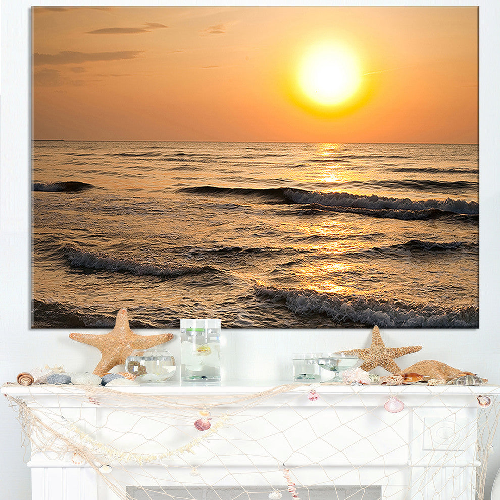 The Typical Sunrise with Tranquil Waves canvas art print is sure to make an impression on anyone who sees it. This artwork is gallery wrapped around a 1-inch solid wood frame and arrives carefully packaged and entirely ready to hang on the wall. Design Art only uses the highest resolution and pigments to ensure a crisp colorful print that is never faded or pixelated. This artwork is sure to be a conversation starter in any home or office.