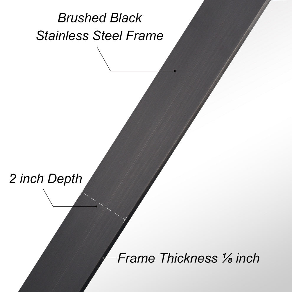 Ultra Stainless Steel Rectangular Wall Mirror, Black, 24"x36", Brushed