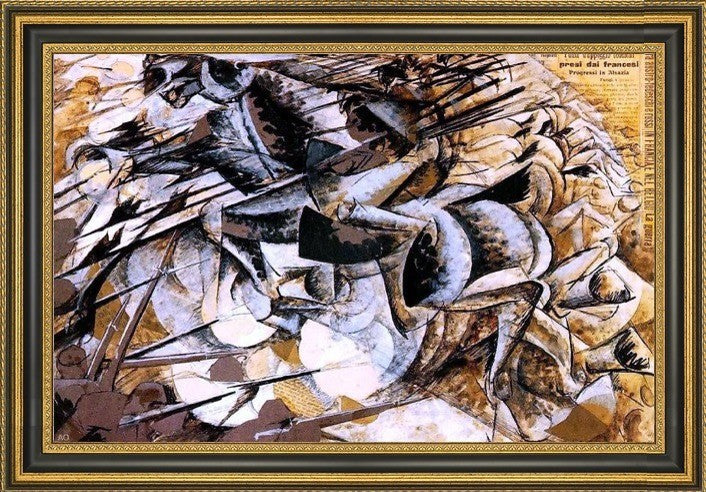Umberto Boccioni Lancers - 16" x 24" Framed Premium Canvas Print