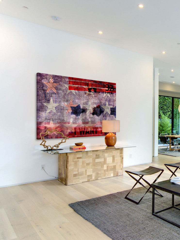 Striking and unique, the "Uncle Sam" Print on Canvas by Parvez Taj will bring your walls to life. Printed on canvas, this 24 inch wide by 16 inch tall contemporary artwork will make a statement in any living room, dining room, or bedroom.- Fine art canvas print by Parvez Taj- Professionally hand stretched- Gallery wrapped in sustainable, non-warping wood- Arrives ready to hang- Made in the USA- Includes a certificate of authenticity- Artist signature on the front