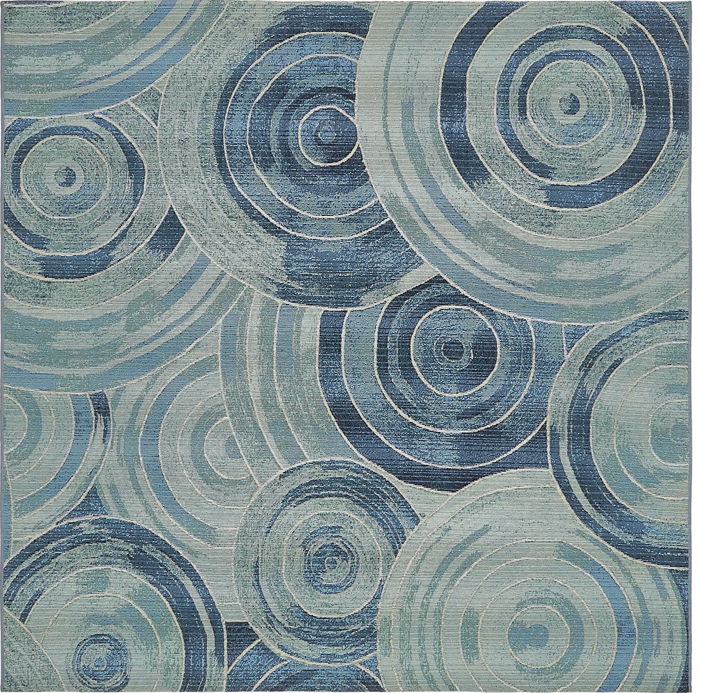 Unique Loom Light Blue Rippling Outdoor 6' 0 x 6' 0 Square Rug