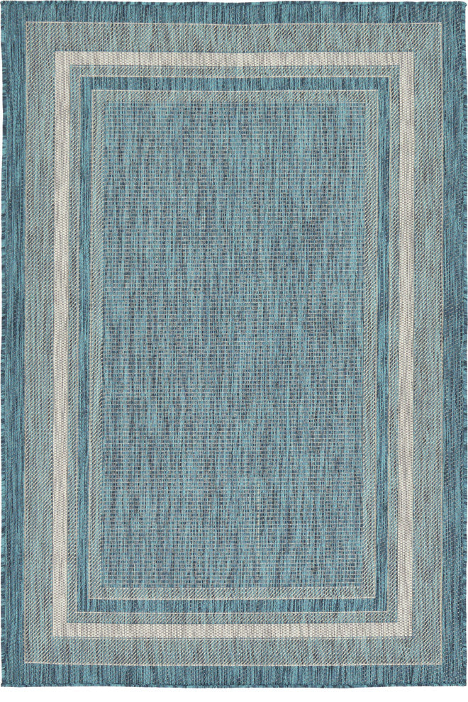 Unique Loom Teal Soft Border Outdoor 4' 0 x 6' 0 Area Rug